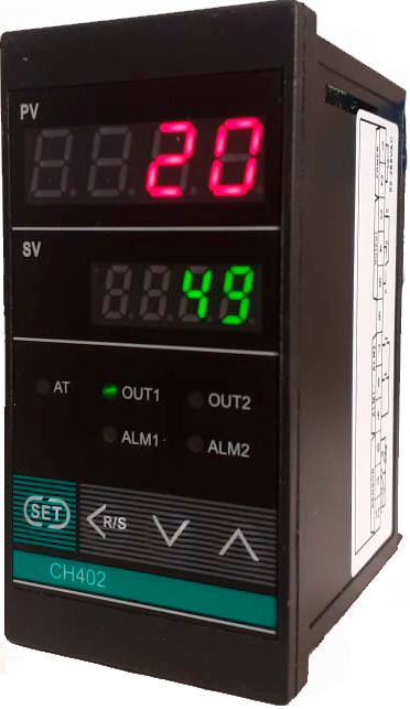 Controlador de Temperatura digital microprocessado, modelo CTS49 é um instrumento com controle PID. Com DISPLAY DUPLO de 4 dígitos, Entrada configurável que trabalha com sinal de entrada de termo elementos tipo J, K, S, T, R, N e termoresistência PT100. A temperatura do processo é visualizada através de um display LED com quatro dígitos em vermelho, controlado por 1(uma) Saída Rele ou Pulso de controle (especificar) + 2 (dois) reles de alarme. O controle é tipo On-Off ou PID, selecionado através do teclado frontal.